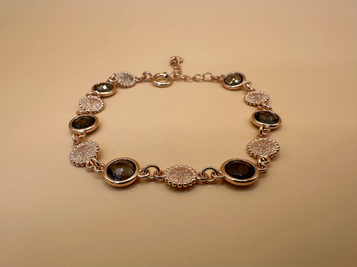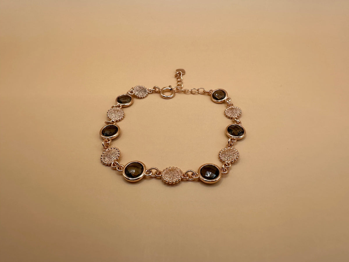 925 Silber Armband vergoldet (Roségold) mit Rauchquarz.