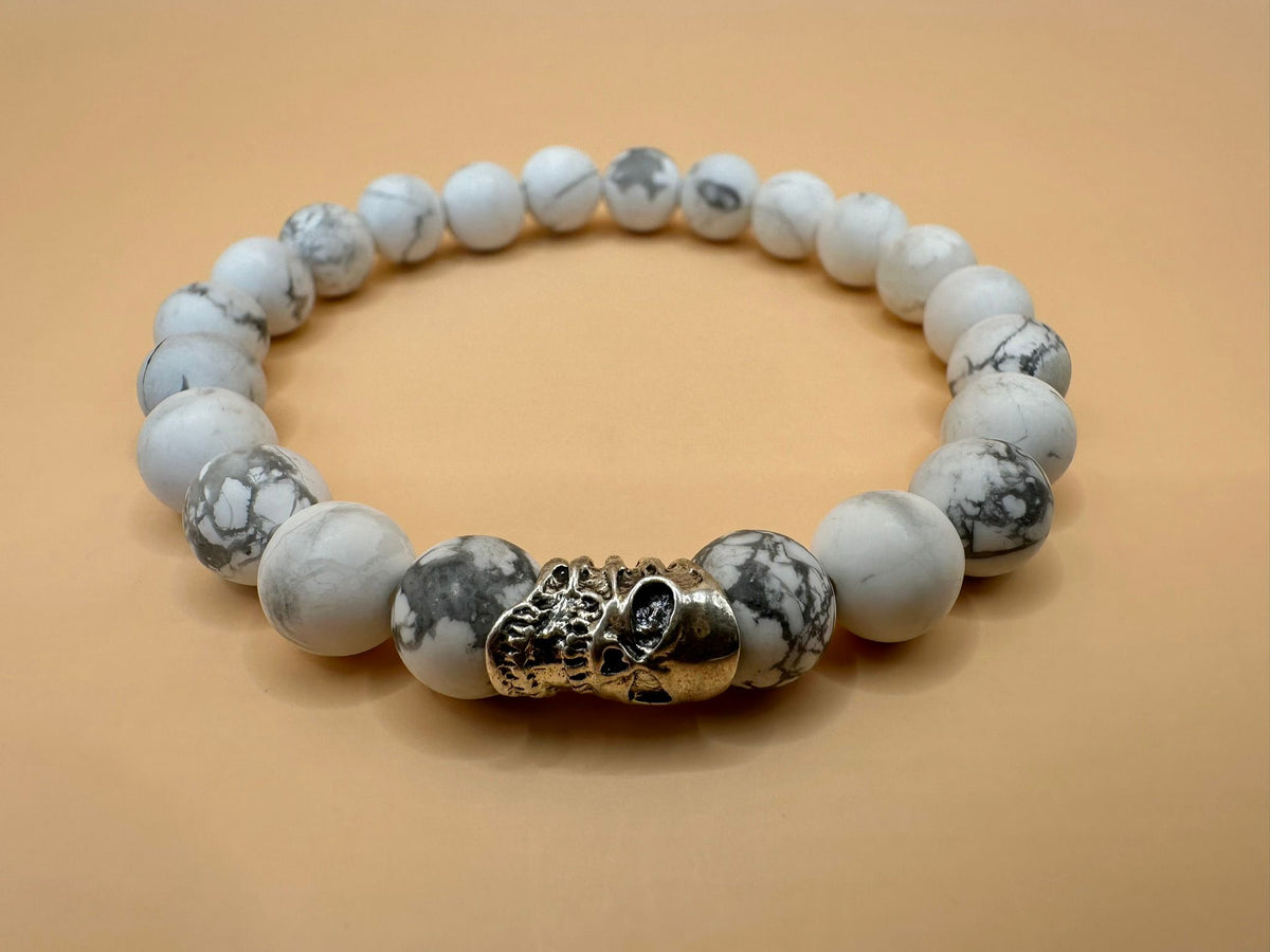 ARMBAND HOWLITH MIT 925 SILBER TOTENKOPF (8mm)