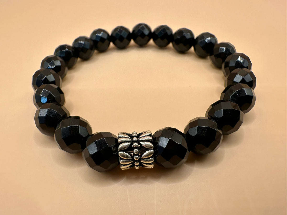 ARMBAND ONYX FACETTIERT MIT 925 SIIBER (8mm)