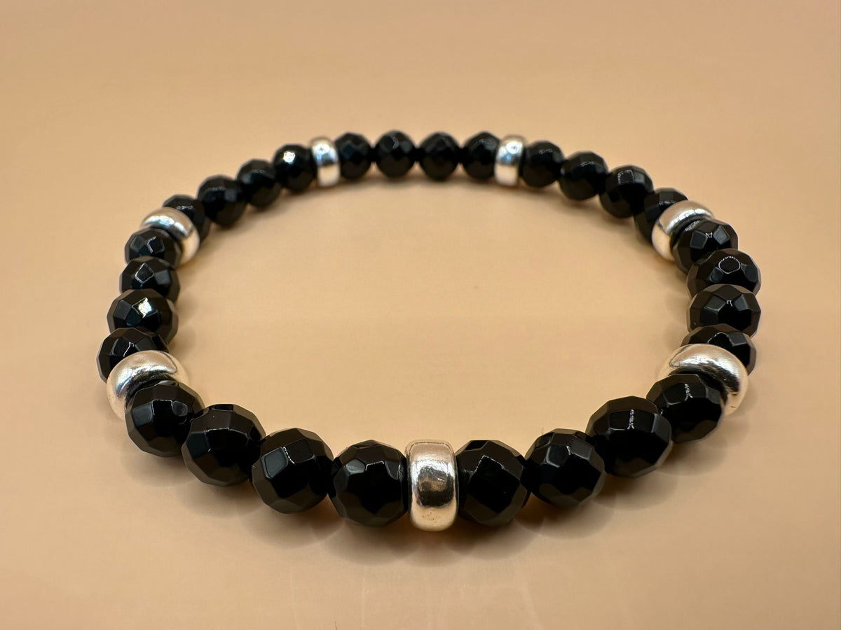 ARMBAND ONYX FACETTIERT MIT 925 SILBER (6mm)