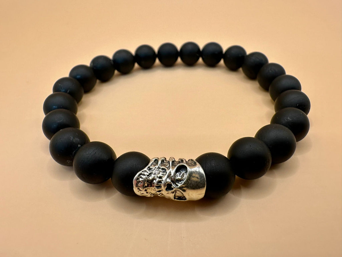 ARMBAND TURMALIN MATT MIT 925 SILBER TOTENKOPF (8mm)