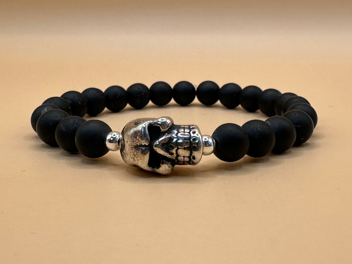 ARMBAND TURMALIN MATT MIT 925 SILBER TOTENKOPF (8mm)