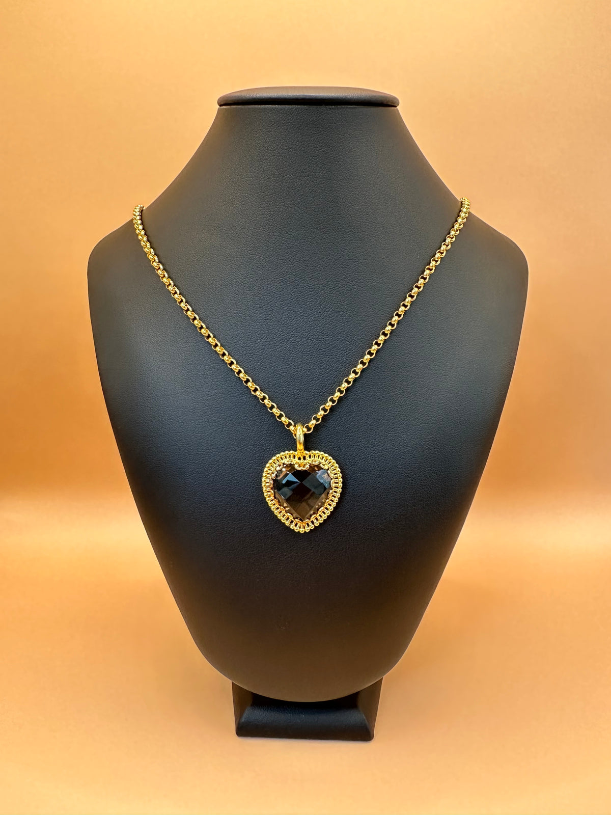 Vergoldete 925 Silber Halskette mit Rauchquarz Herz Anhänger.
