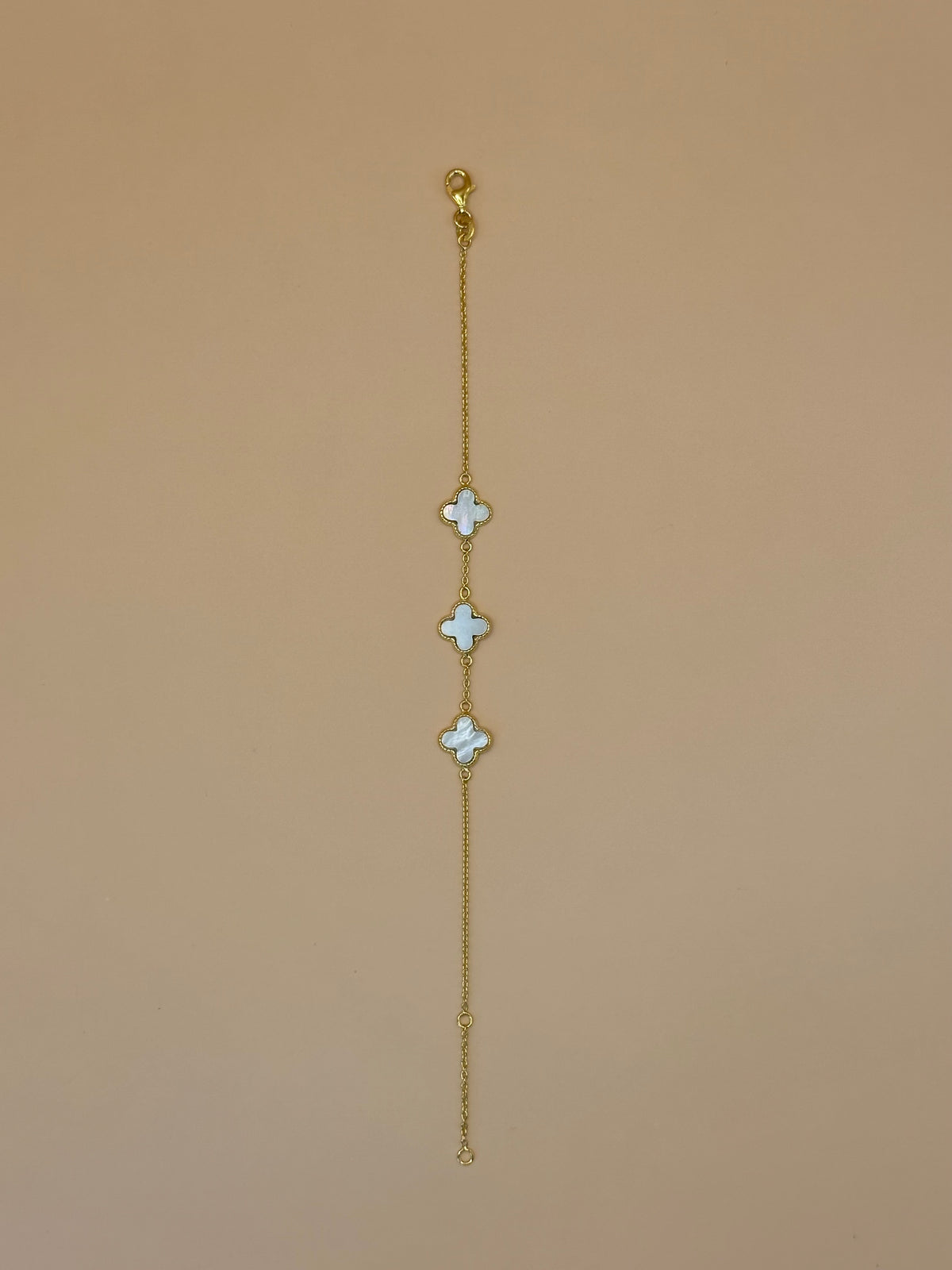925 Silber "Kleeblatt" Armband vergoldet mit Perlmutt
