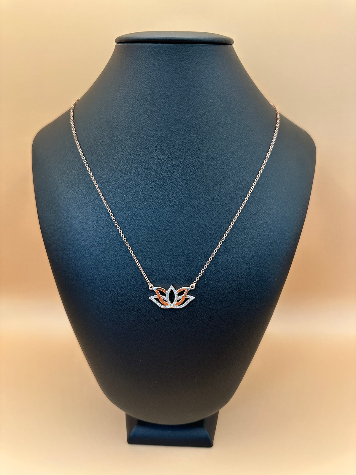925 Silberkette vergoldet mit Lotusblume und Zirkonia als Anhänger.