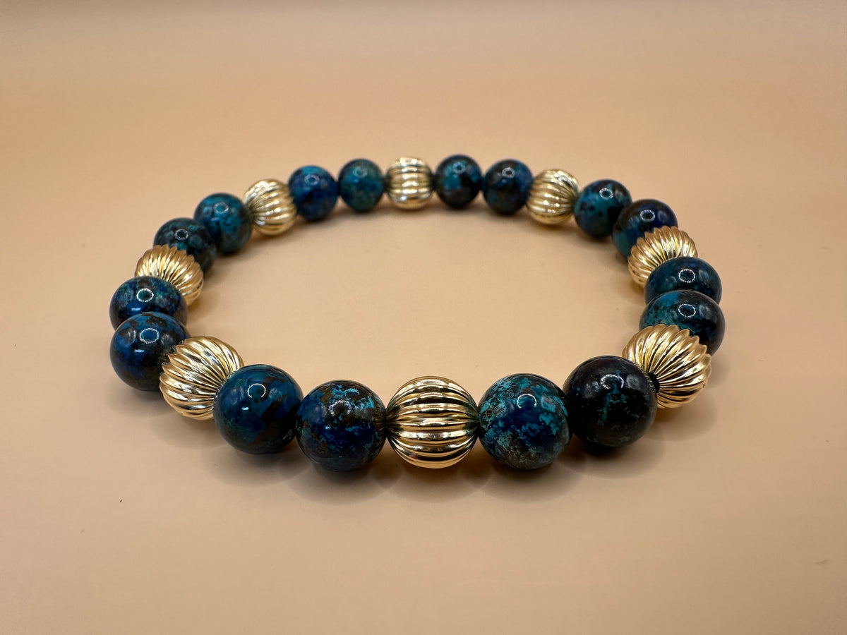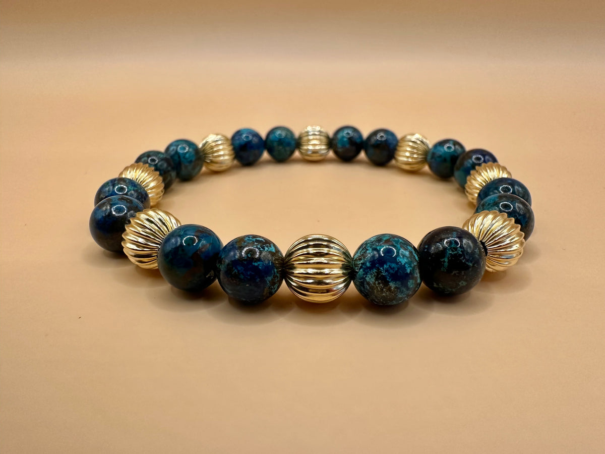 ARMBAND AFRICAN CHRYSOKOLL MIT 9k GOLD (8mm) - LIMITED EDITION